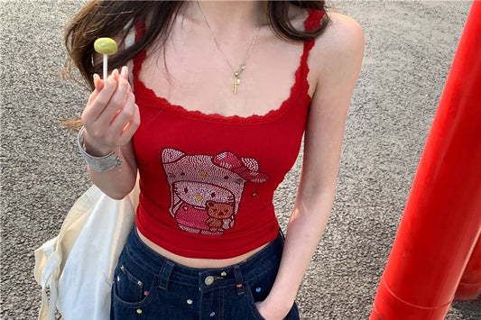 Scoop Neck Plain Crop Camisole Top / Drawstring Waist Flared Pants / Crew Neck Button-Up Cardigan