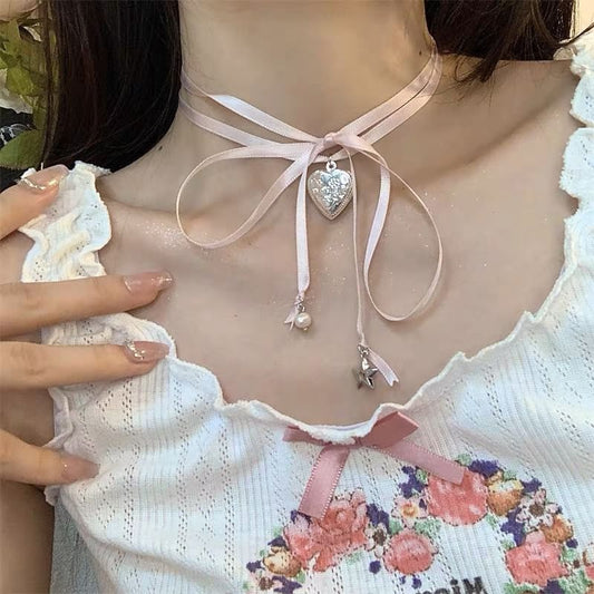 Arrow Heart Rhinestone Pendant Alloy Necklace