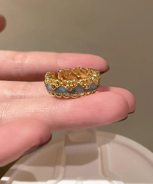 Silver Rings Overgild Two-Piece Open Retro Set Sterling Lace Gold Gourds