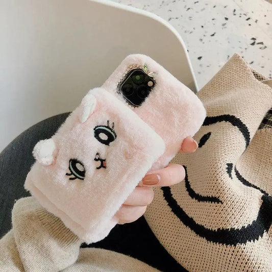 Étui de téléphone Iphone avec broderie de chat au poignet en fourrure MK15211