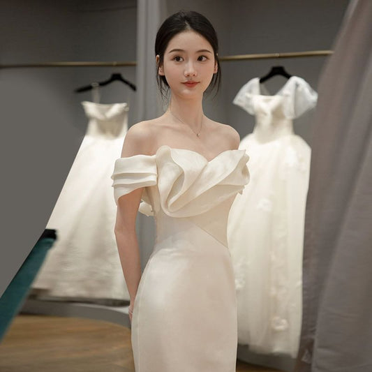 Off-Shoulder Plain Knot Ruched Mermaid Evening Gown