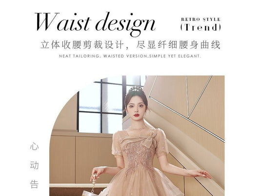 Short-Sleeve Rhinestone Mesh A-Line Evening Gown (Various Designs)