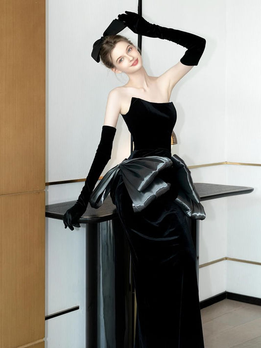 Strapless Plain Bow Back Trained Mermaid Evening Gown