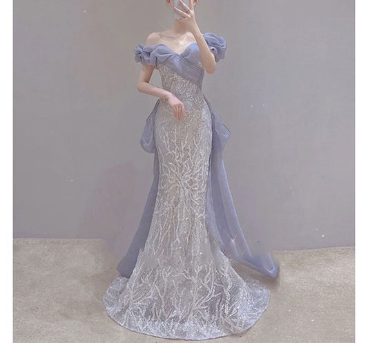 Off Shoulder Trained Mermaid Evening Gown