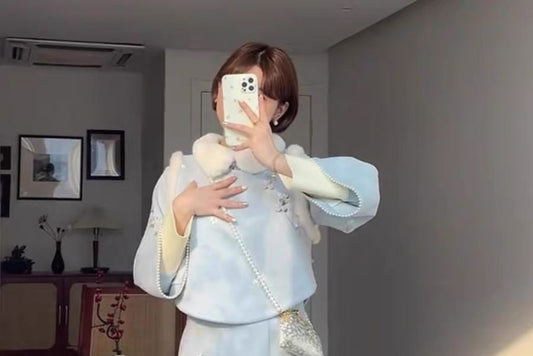 Cartoon Embroidered Fleece Button Vest / Long-Sleeve Midi Qipao / Set