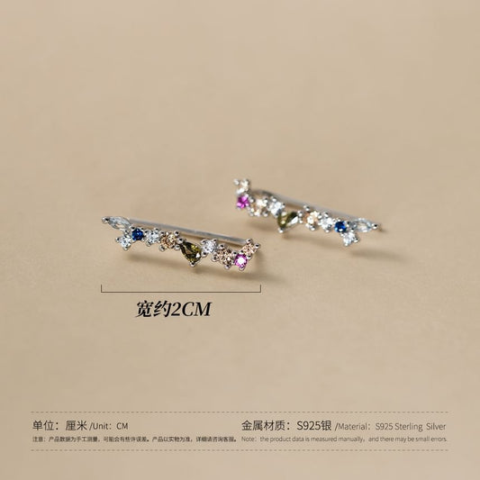 925 Sterling Silver Rhinestone Cat Asymmetrical Drop Earring
