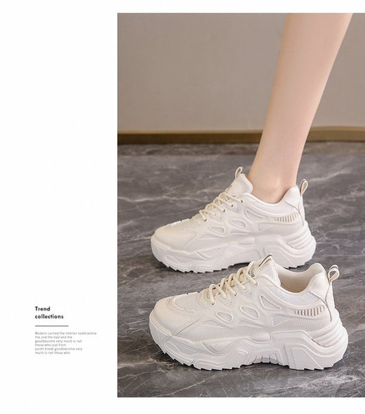 Hidden Panel Faux Leather Lace-Up Sneakers Wedge Lace