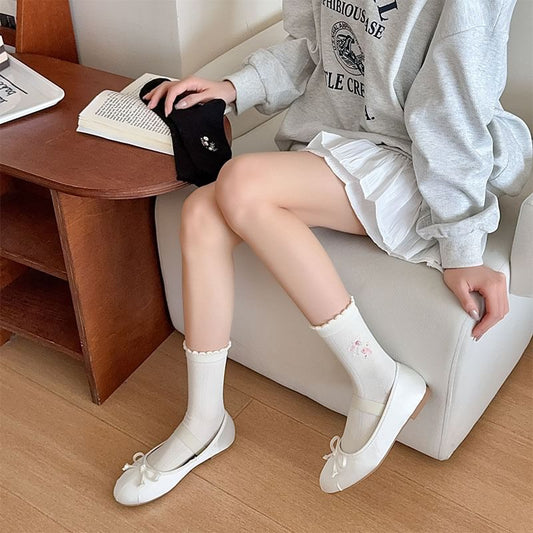 Ruffle Trim Bow Crew Socks