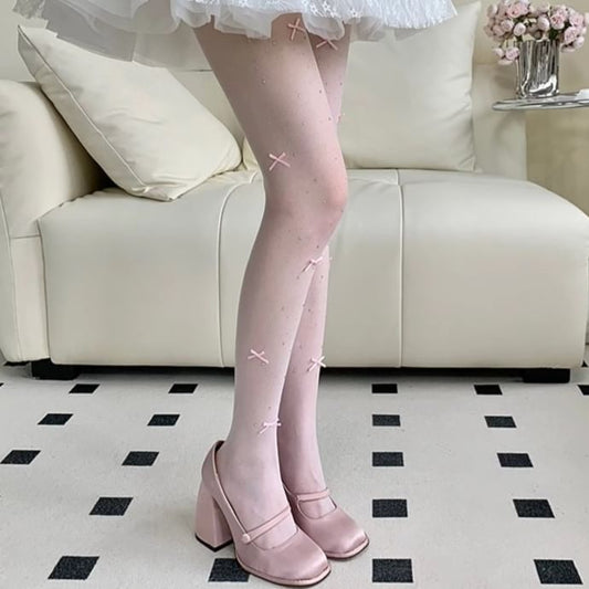 Bow Rhinestone Sheer Tights