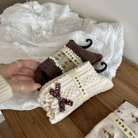 Bowknot Embroidered Crew Socks