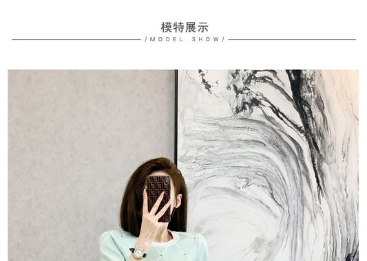 Set: Crew Neck Checkerboard Sweater + High Waist Mini Straight Skirt