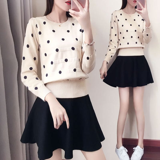 Set: Patterned Sweater + High Waist Knit Mini Straight Skirt