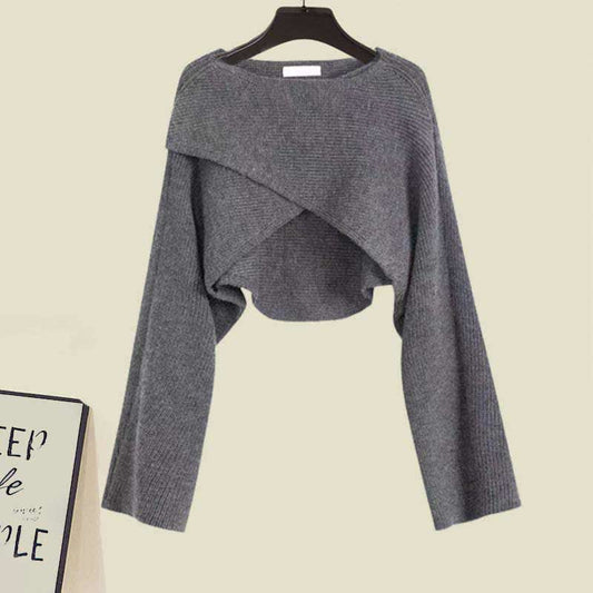 Elegant Bow Knot Cardigan Crop Sweater Long Sleeve Dress