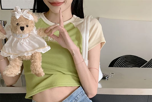 Lettering Print Crew T-Shirt Crop Short-Sleeve Neck