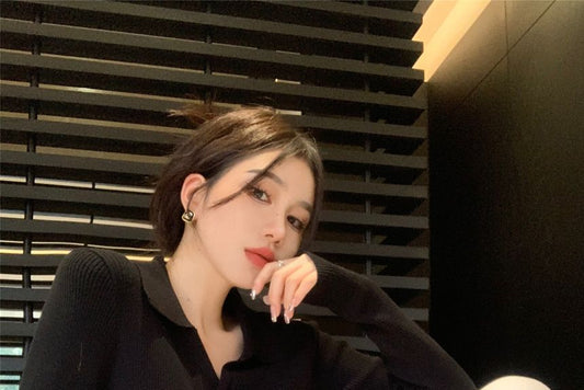 Haut court en tricot à manches longues et col fermé OE34