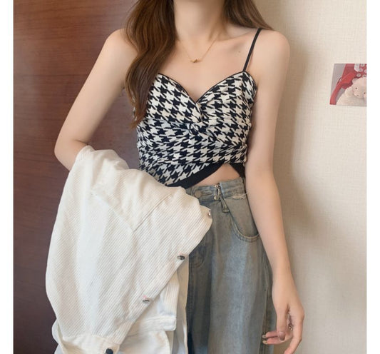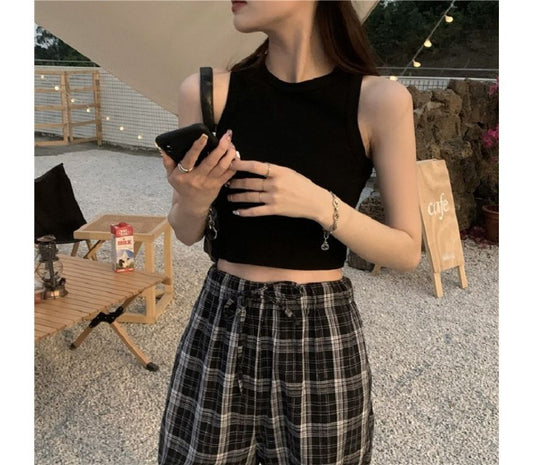 Square Tank Neck Top Ribbed Plain Crop Knit