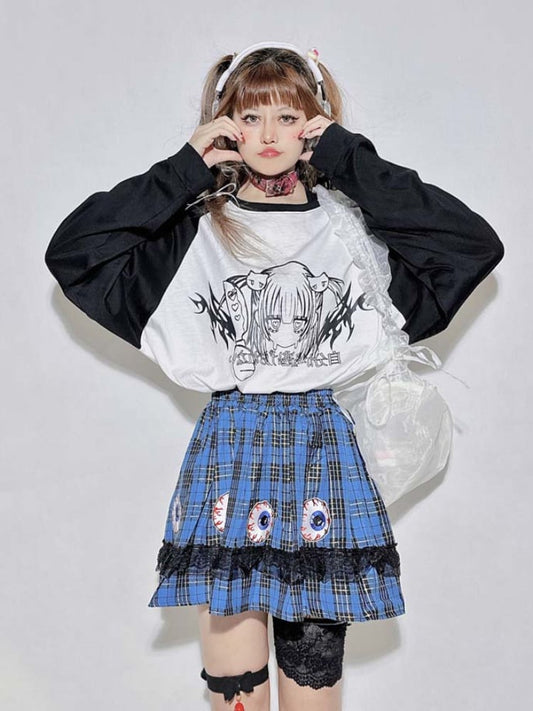 Black Kitty Spider Cross Skeleton Appliques Oversized Top
