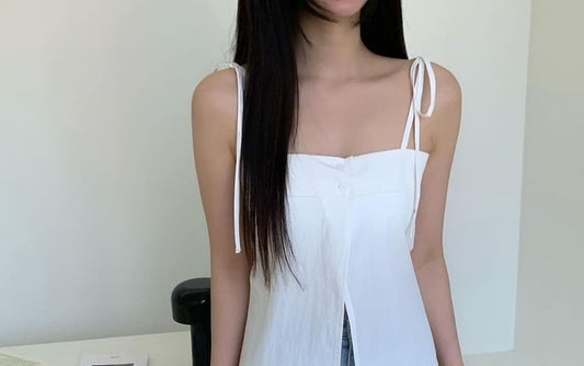 Set: Button-Up Crop Camisole Top + High Waist Mini Pencil Skirt