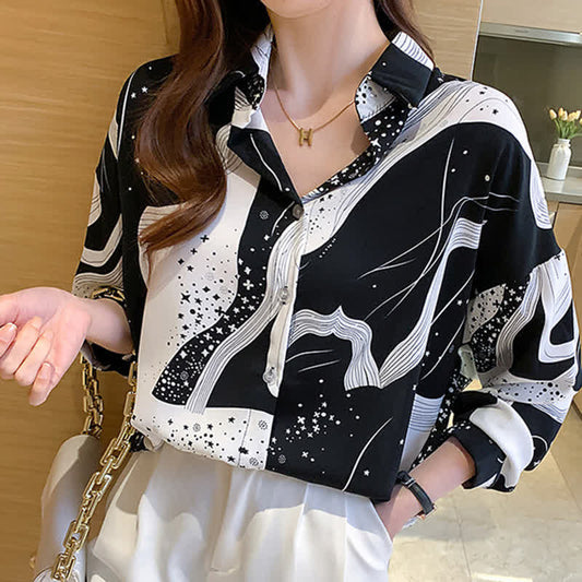 Stripe Print Long Sleeve Chiffon Shirt Workwear