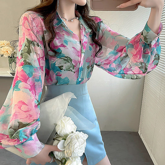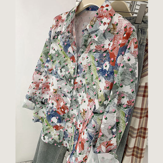 Vintage Purple Flowers Print Long Sleeve Shirt