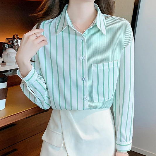 Stripe Fake Two Pieces Knit White Lapel Shirt