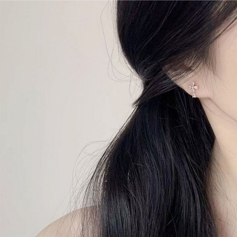 925 Sterling Silver Rhinestone Cross Stud Earring