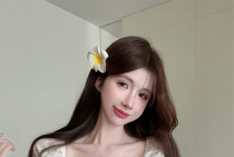 A-Line / Embroidered Rise Skirt Neck Lace Tie Mini Short-Sleeve Blouse Eyelet Tiered High Square Front