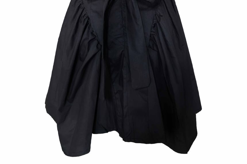 A-Line Neck Square Tie Plain Waist Back Open Mini Dress Sleeveless