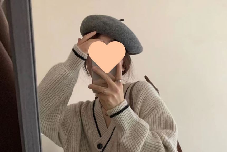 Asymmetrical One-Button V-Neck Knit Top