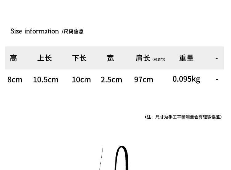 | Upper Width | Bottom Width | Height | Thickness | Strap Length |