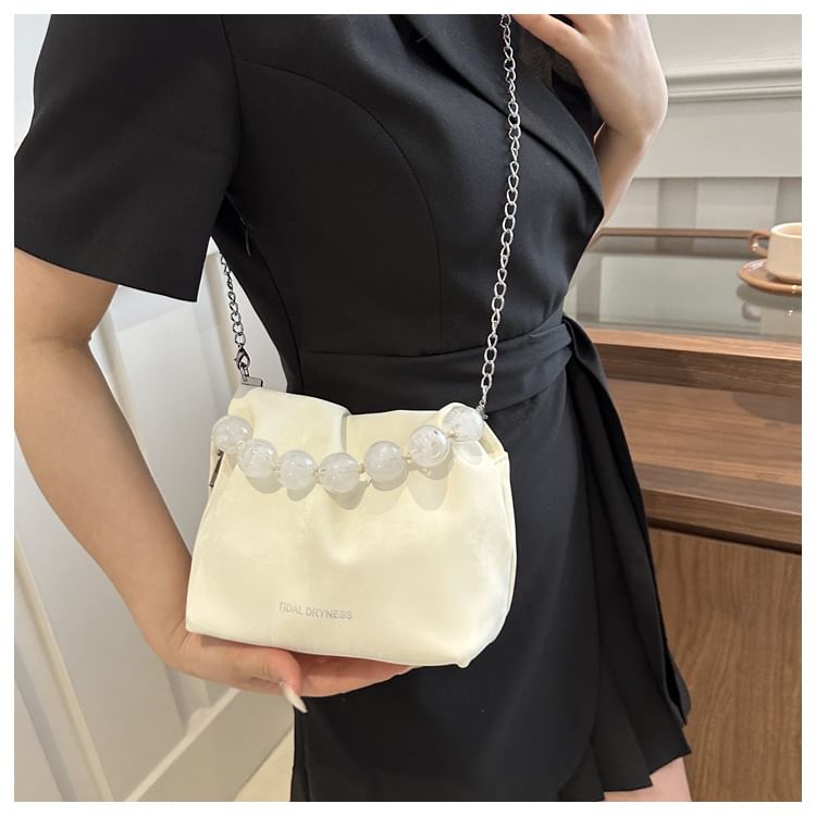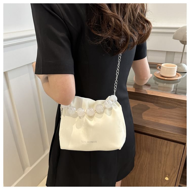 Beaded Faux Leather Bucket Bag