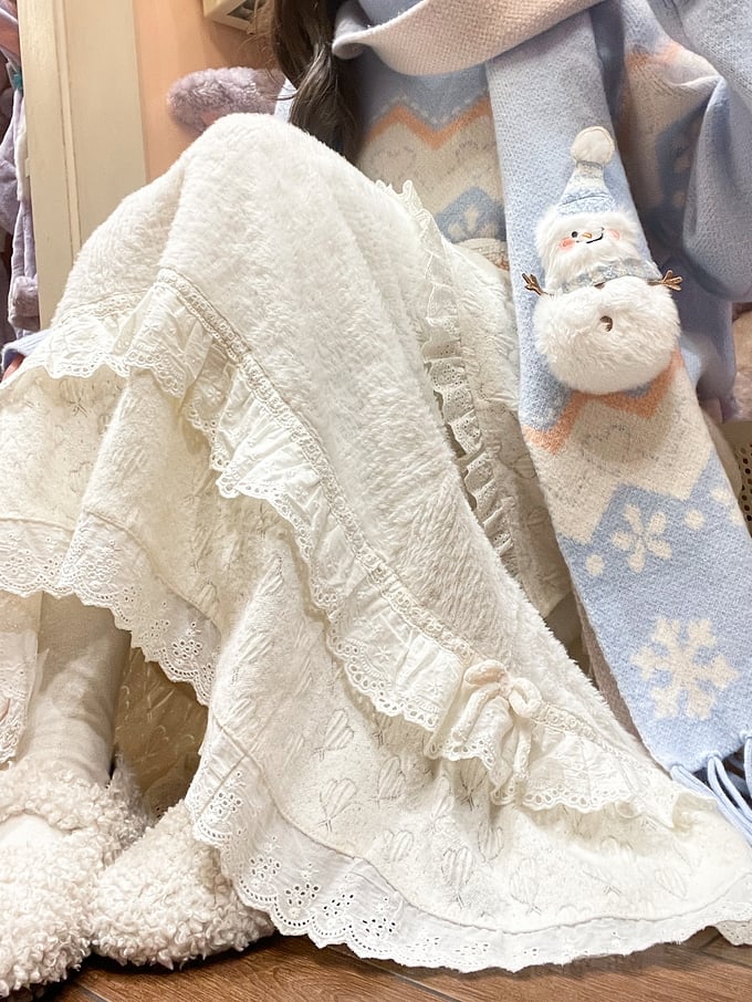 Beige High Waist Sweetheart Bow Accents Lace Trim Midi Skirt