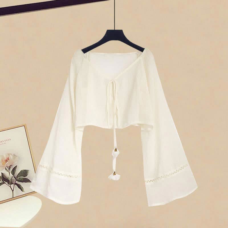 Add an elegant touch to your wardrobe with our Bell Sleeve Cardigan Blue Floral Print Slip Dress Set. This versatile set includes a stylish cardigan and a floral print slip dress, perfect for any occasion. The bell sleeves and bold floral print add a touch of sophistication to your outfit.