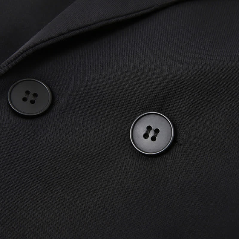 Black Gothic Chain Crop Blazer Hollow Buckle Pleated Skirt