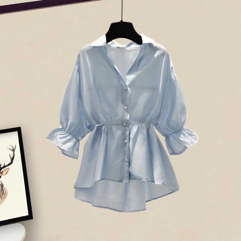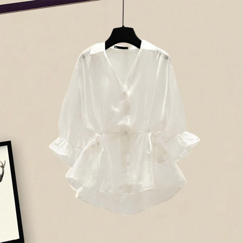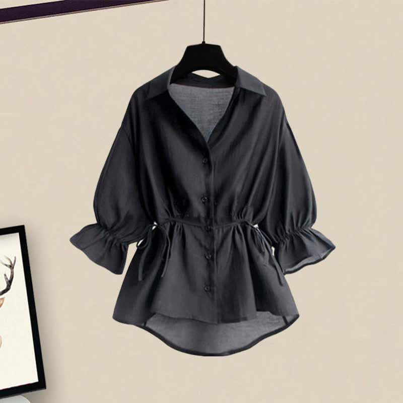 Experience effortless elegance with our Blue Drawstring Shirt Tank Top Flared Denim Pants. The drawstring shirt and tank top combination offers a chic and comfortable fit, while the flared denim pants add a touch of sophistication to your style. Perfect for any occasion, this versatile set is a must-have for any fashion-forward wardrobe.