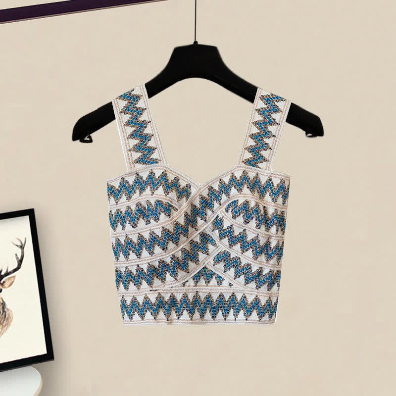 Blue Drawstring Shirt Tank Top Flared Denim Pants