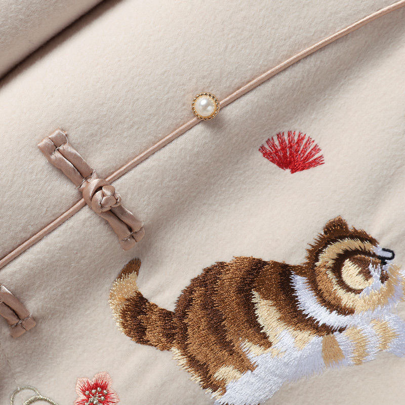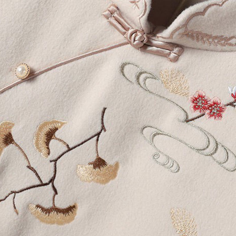 Blue Embroidery Loose Hoodie Vintage Sweatshirt Dress