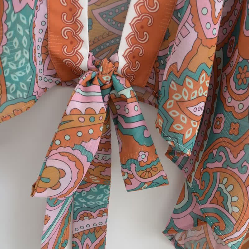Boho Print Lace Up Cardigan Kimono Outerwear