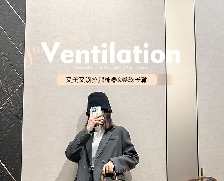 Boots Buckled Zip-Up Plain Platform Faux Leather Tall