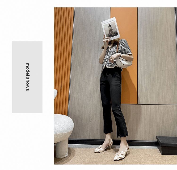 Pointed Toe Bow Satin Slingback Pumps