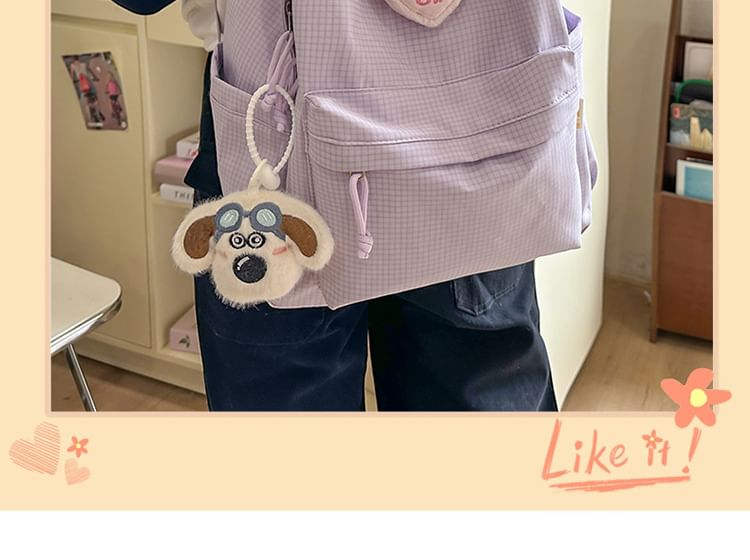 Plaid Nylon Backpack / Brooch / Set