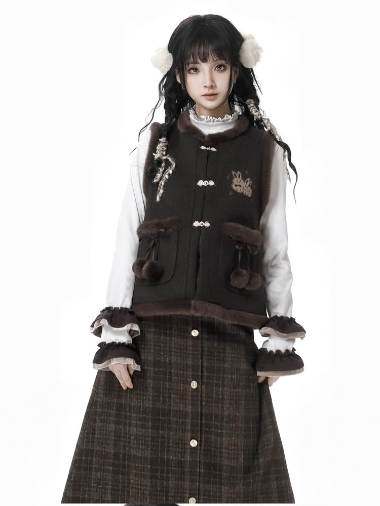 Indulge in soft and fluffy warmth with our Brown Bow Bunny Plush Trim Vest. Embrace the cuteness of the bunny ears and bow detail while staying cozy and stylish. Perfect for adding a playful touch to any outfit.