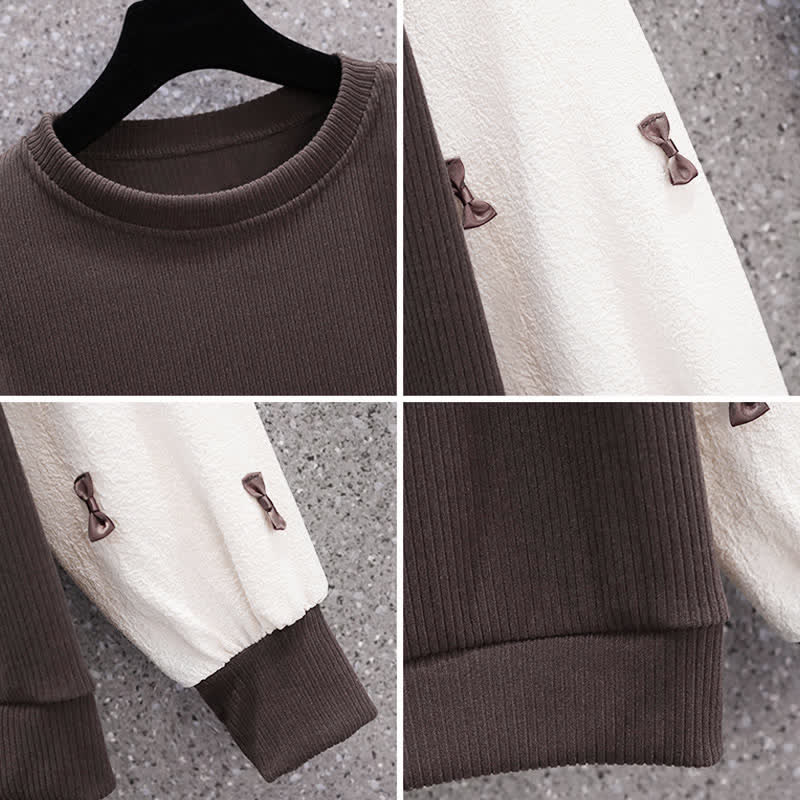 Brown Bow Knot Sleeve Shirt High Waist Skirt