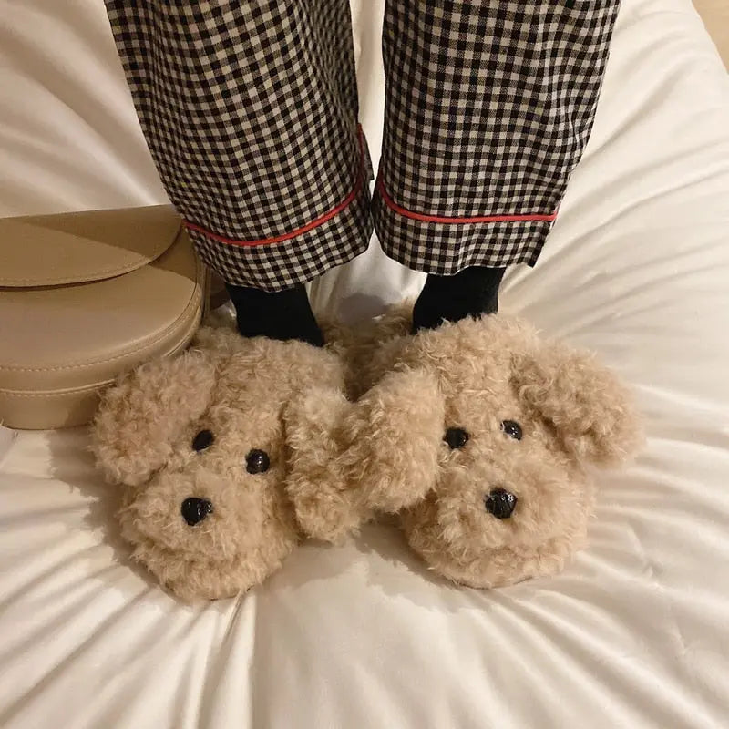Pantoufles marron pour chiot et chien pour l'hiver Lin78