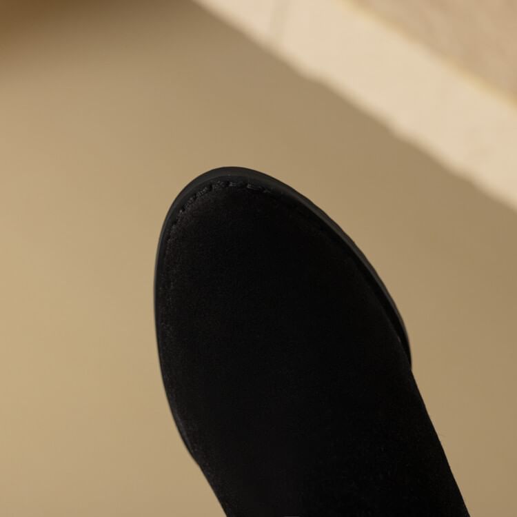 Buckled Asymmetrical Chunky Heel Tall Boots
