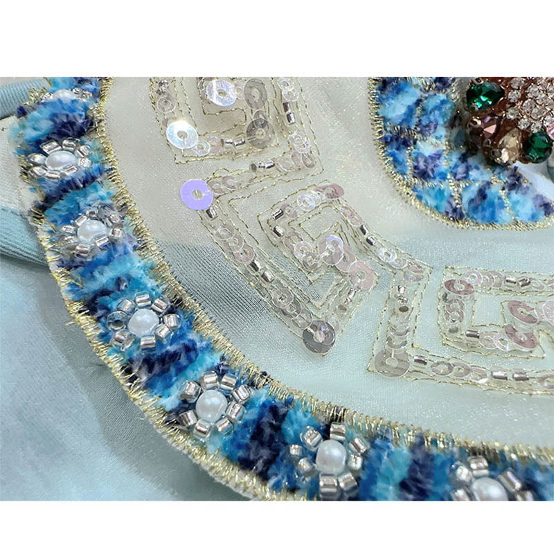Bule Floral Embroidery Shirt Slit Skirt Set