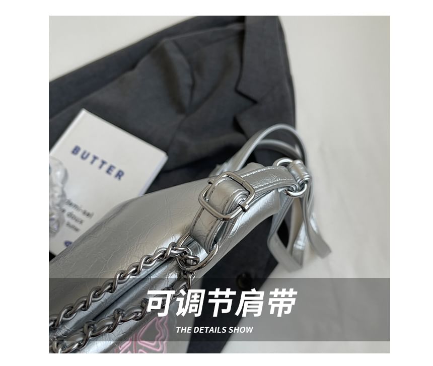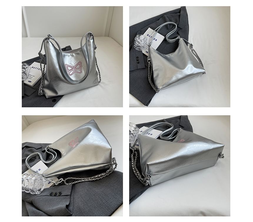 Butterfly Embroidered Faux Leather Crossbody Bag