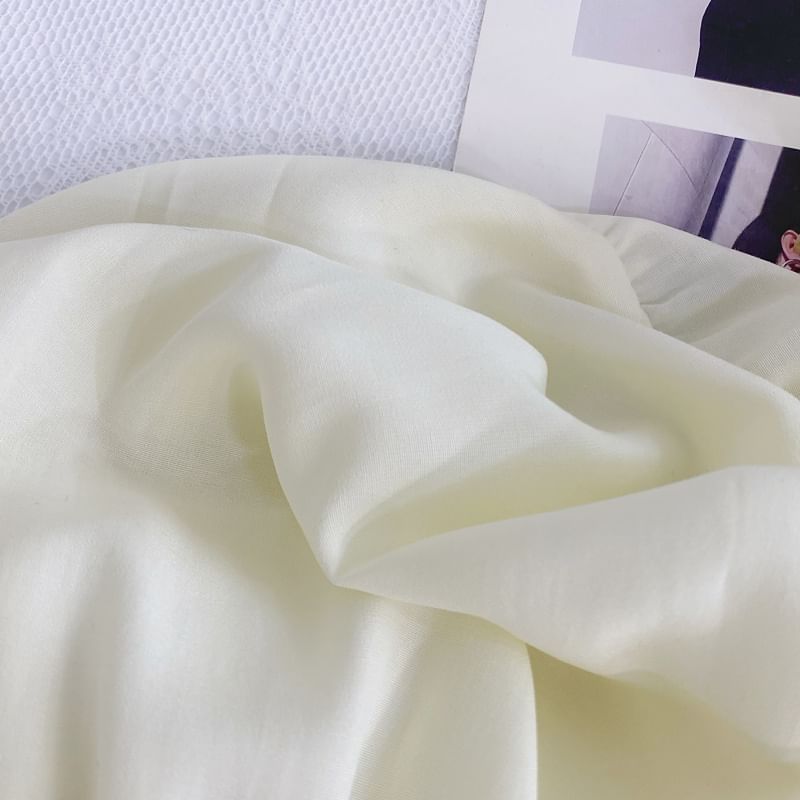 Cap-Sleeve Bow Frill Trim Button A-Line Dress