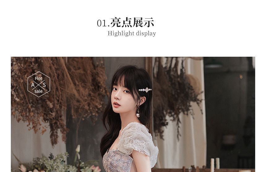 Cap-Sleeve Sequin Mesh A-Line Evening Gown