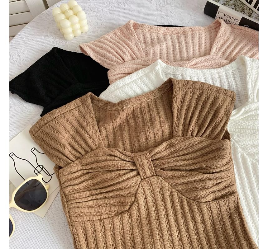 Cap-Sleeve Square-Neck Plain Bow Tee